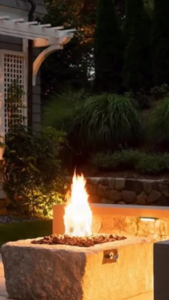 Raw block to the finished product! @amrlandscape bringing the heat with this custom reclaimed granite block firepit🔥🔥🔥 @warmingtrends #firepit